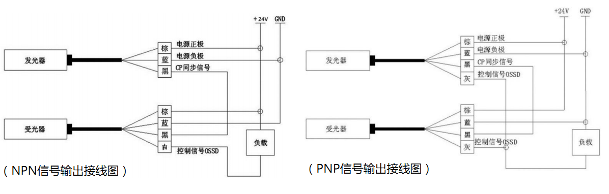 許多客戶在收到我們的安全光柵之后,就打電話過來(lái)詢問電纜線怎么連接,在這里,小編來(lái)說(shuō)一下關(guān)于安全光柵的接線問題。其實(shí)很簡(jiǎn)單,興兆業(yè)的安全光柵的線有幾種顏色,一般都是棕色的線接入正極,藍(lán)色線接入負(fù)極,黑色和灰色是接信號(hào)線。